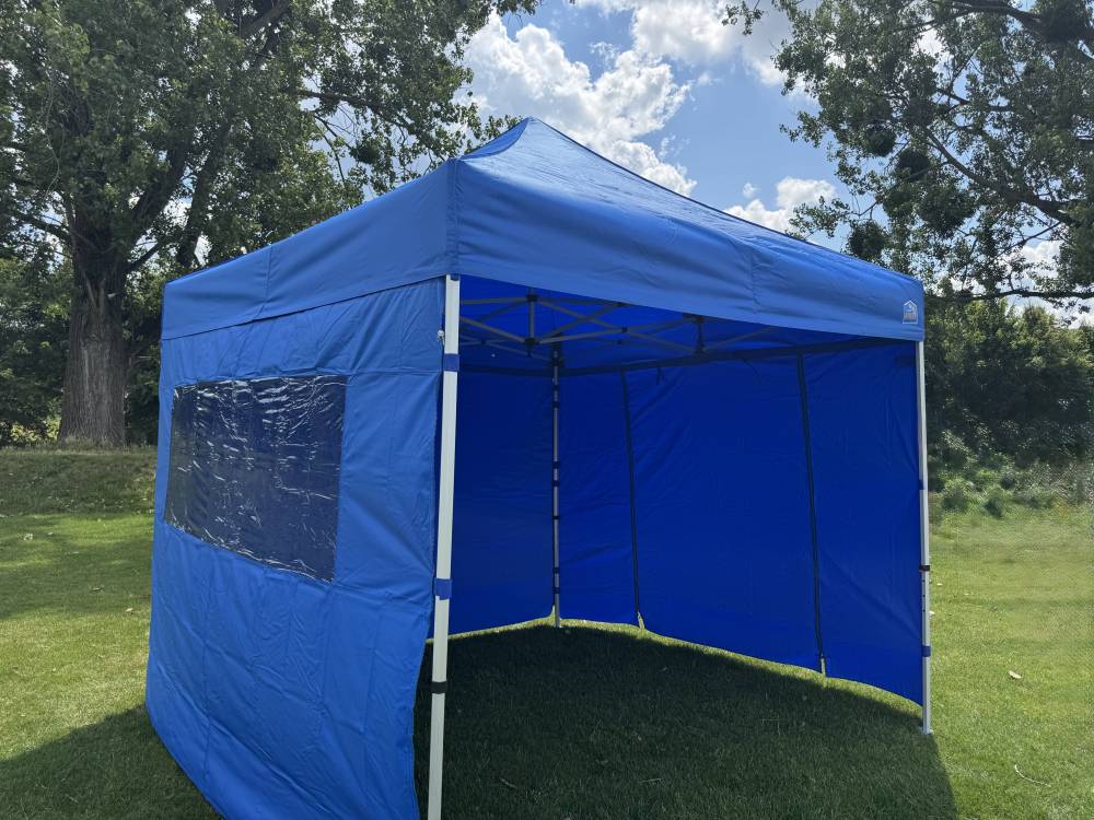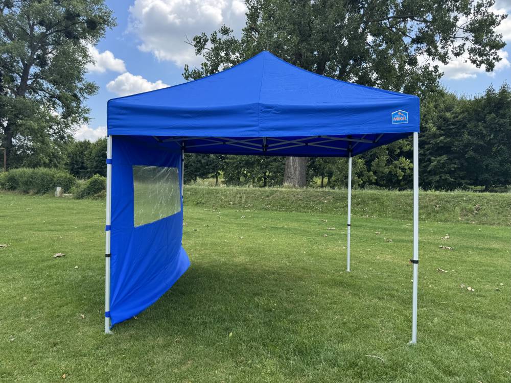 Bočnice se připevňují ke střeše pomocí suchých zipů a navzájem se spojují pomocí spirálových zipů s jezdcem.